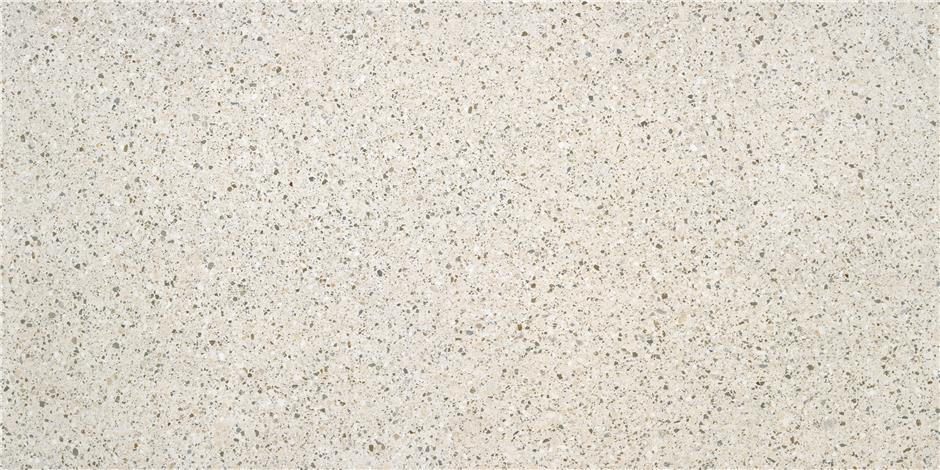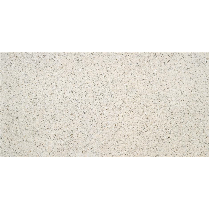 Matné terrazzo 60×120 pro kuchyň, koupelnu a chodby i na terasu. Spára světle šedá či písková.
