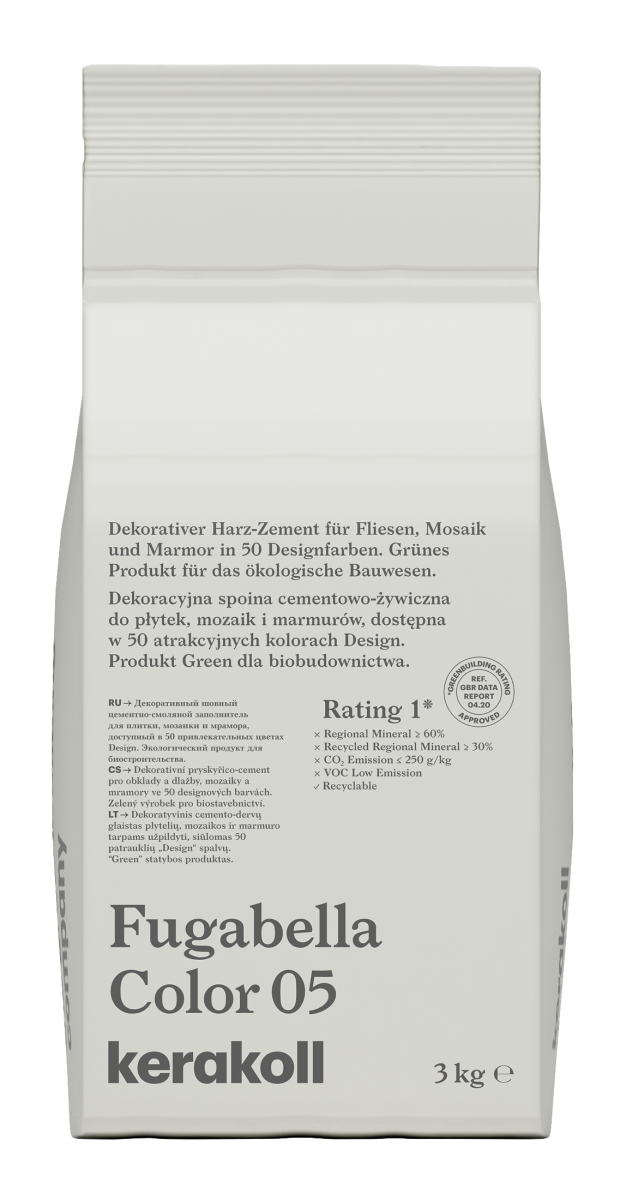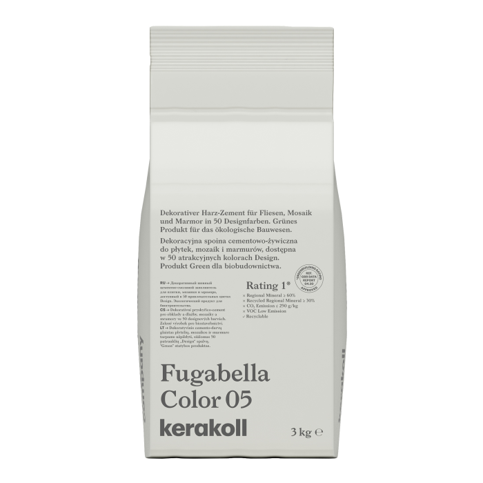 Fugabella® Color je revoluční, hybridní spárovací tmel pro dekorování všech ploch ze slinutých obkladů a dlažeb, mozaik a přírodních kamenů. Fugabella® Color se vyznačuje vodoodpudivostí, neobyčejně nízkou nasákavostí vodou, vysokou tvrdostí povrchu, zvýšenou odolností vůči nejběžnějším kyselinám a celkovou jednotnou barevností.