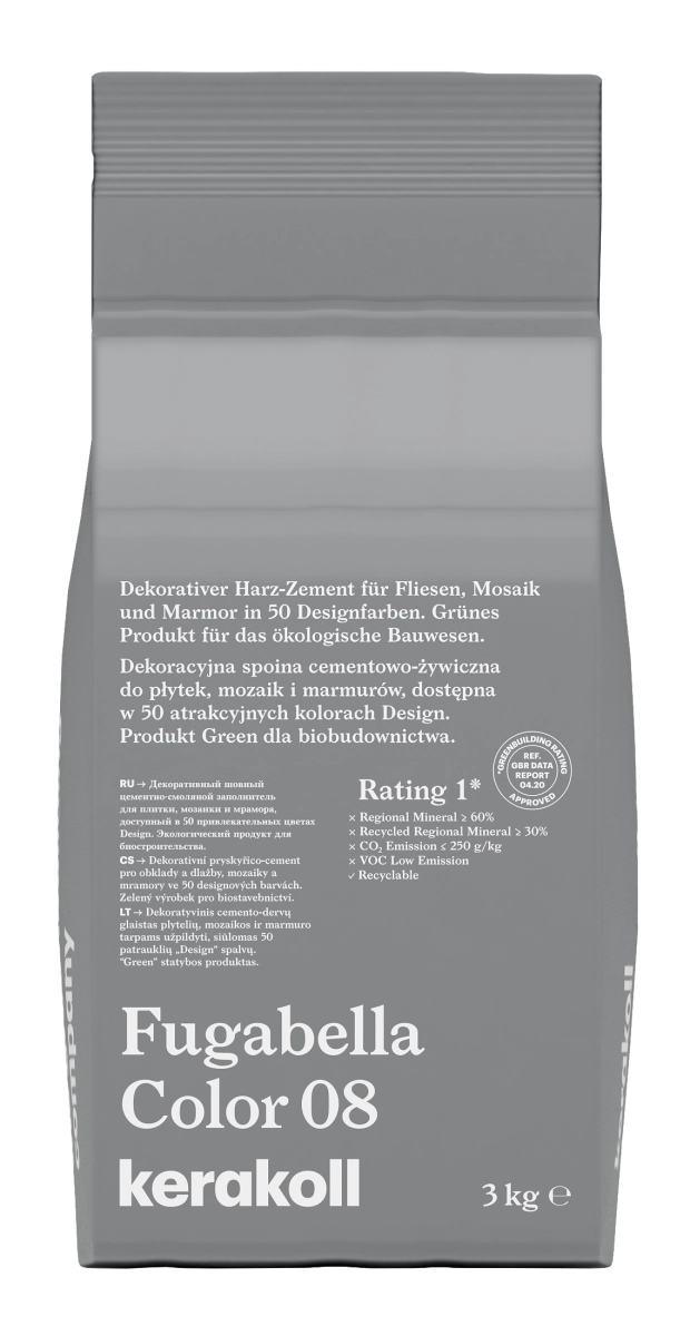 Fugabella® Color je revoluční, hybridní spárovací tmel pro dekorování všech ploch ze slinutých obkladů a dlažeb, mozaik a přírodních kamenů. Fugabella® Color se vyznačuje vodoodpudivostí, neobyčejně nízkou nasákavostí vodou, vysokou tvrdostí povrchu, zvýšenou odolností vůči nejběžnějším kyselinám a celkovou jednotnou barevností.